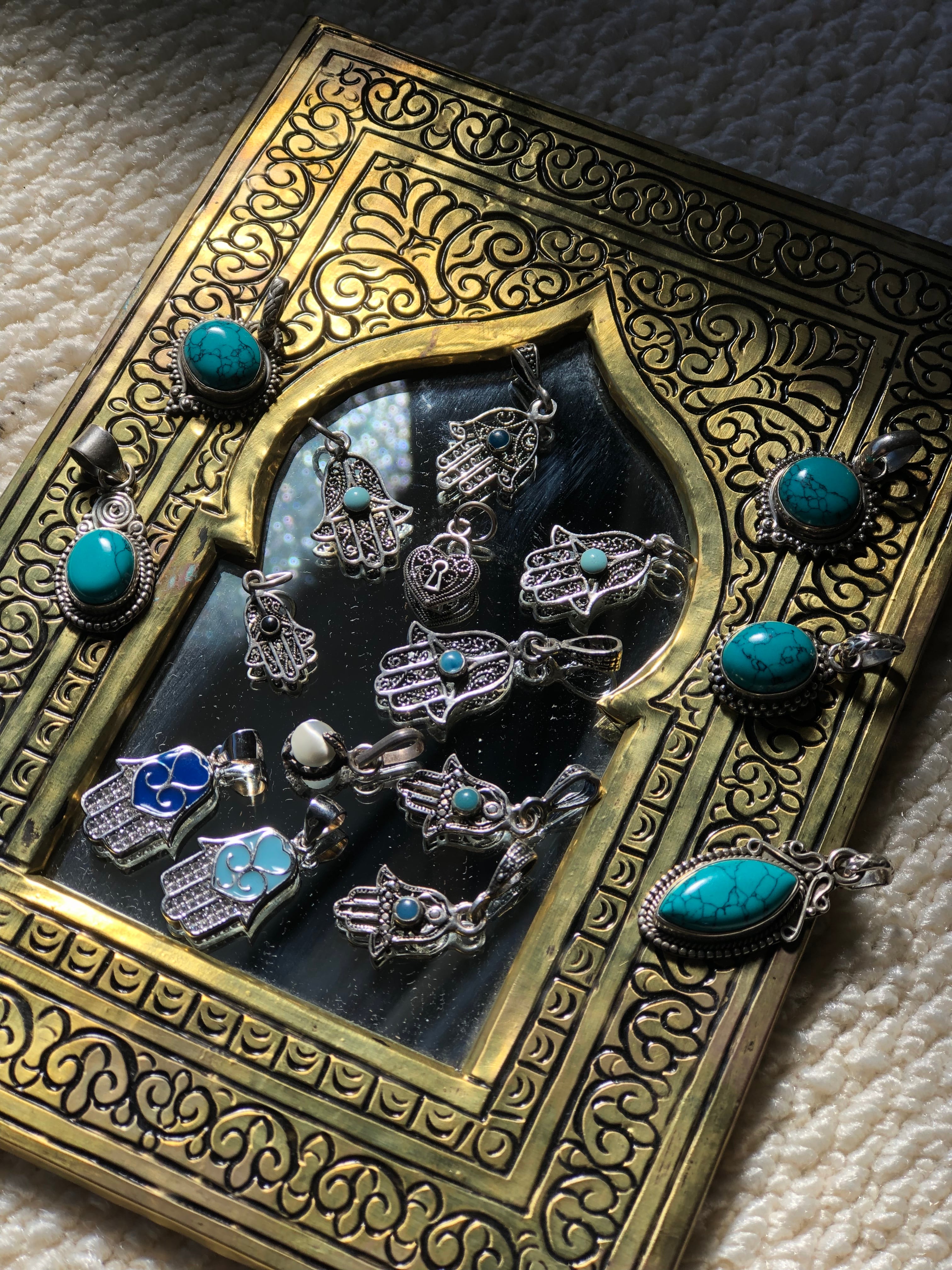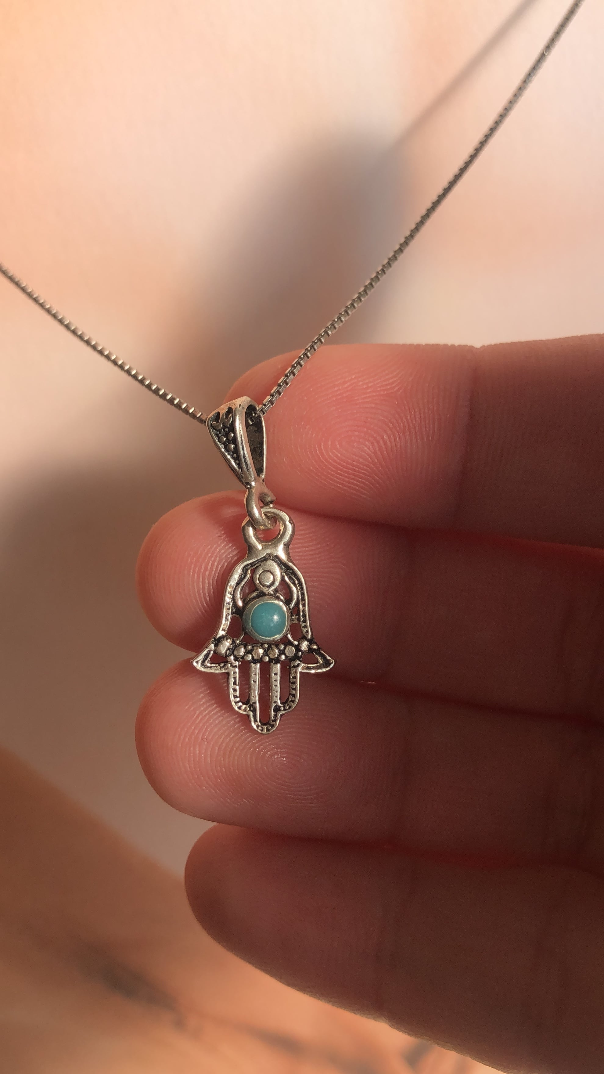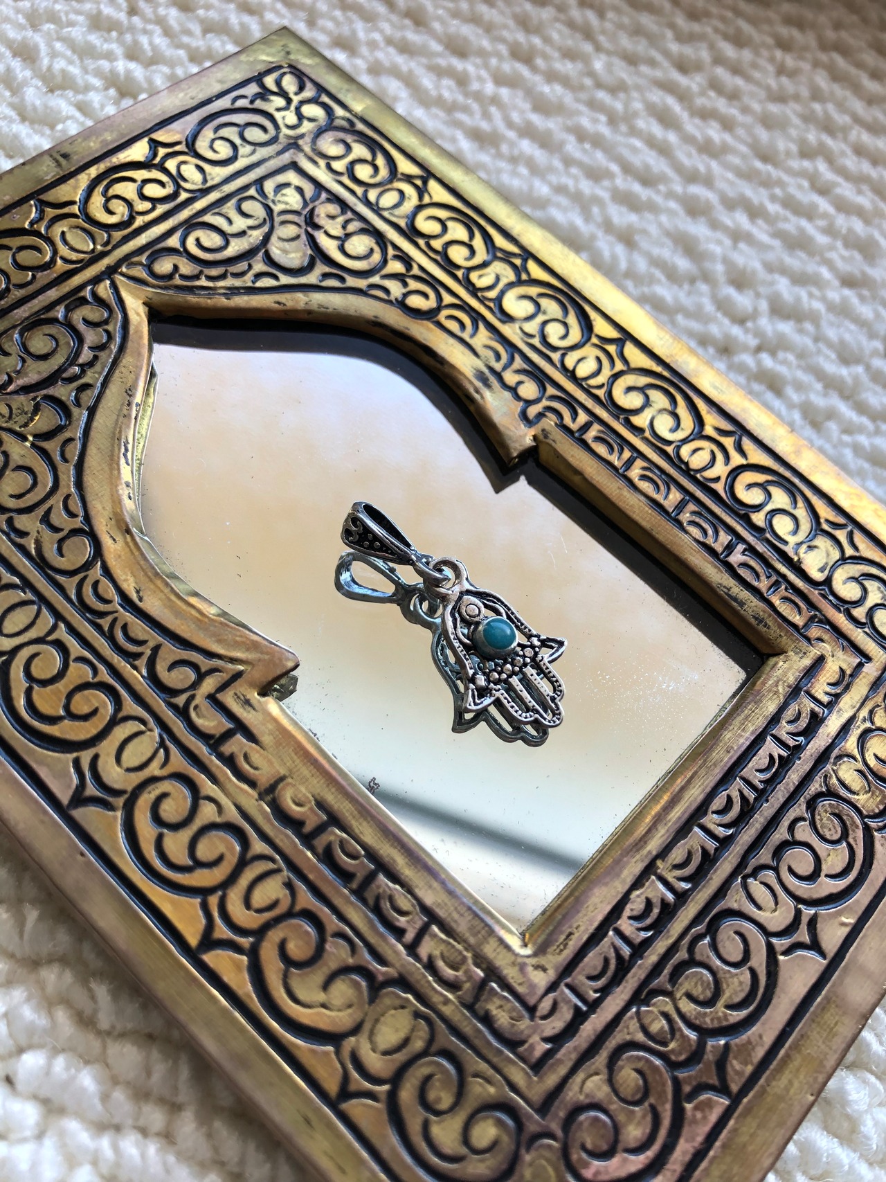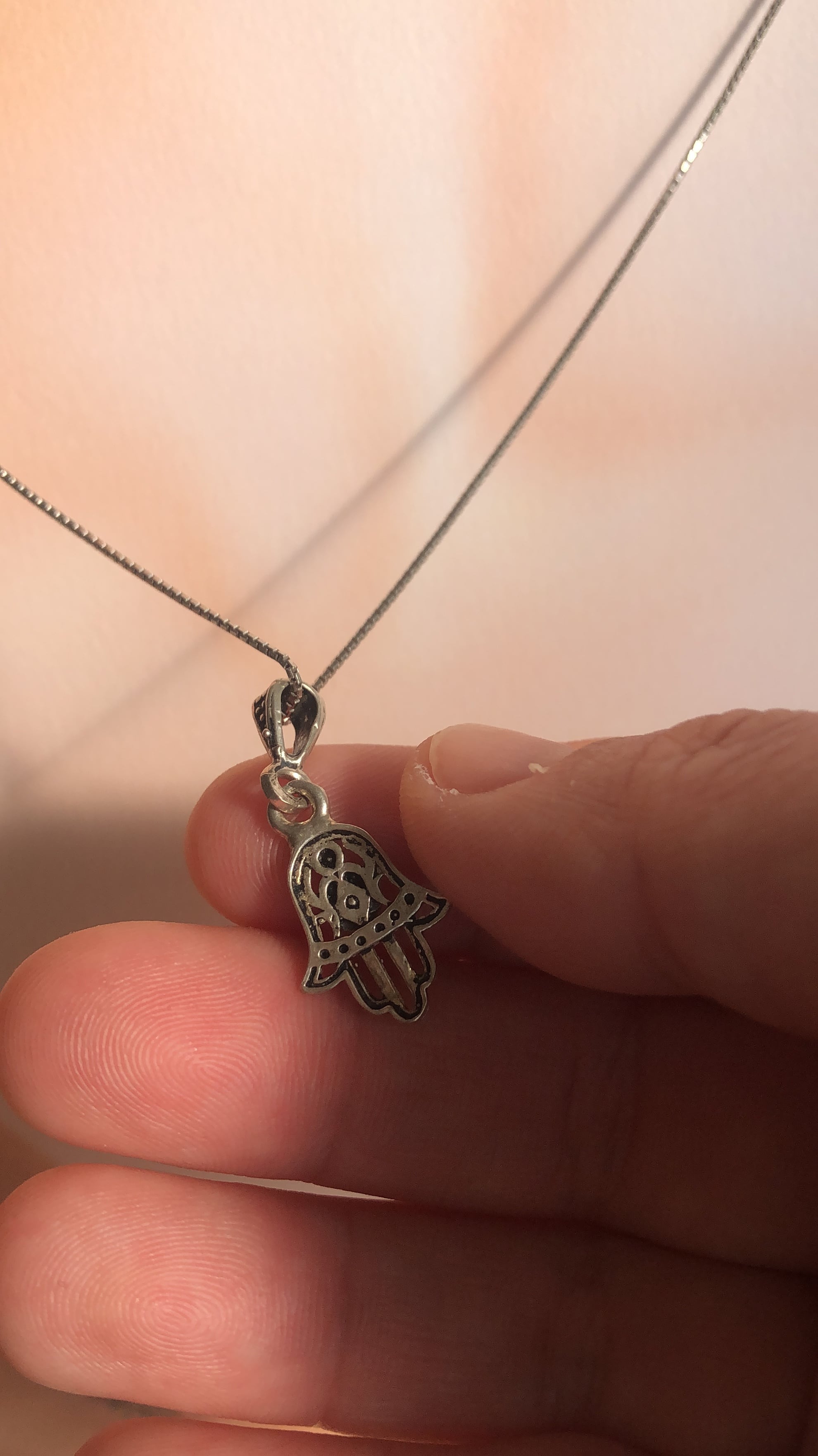 魔除けとして人気のあるハムサ/ファティマの手のペンダントトップ。透かしが可愛いモダンデザインのハムサです。