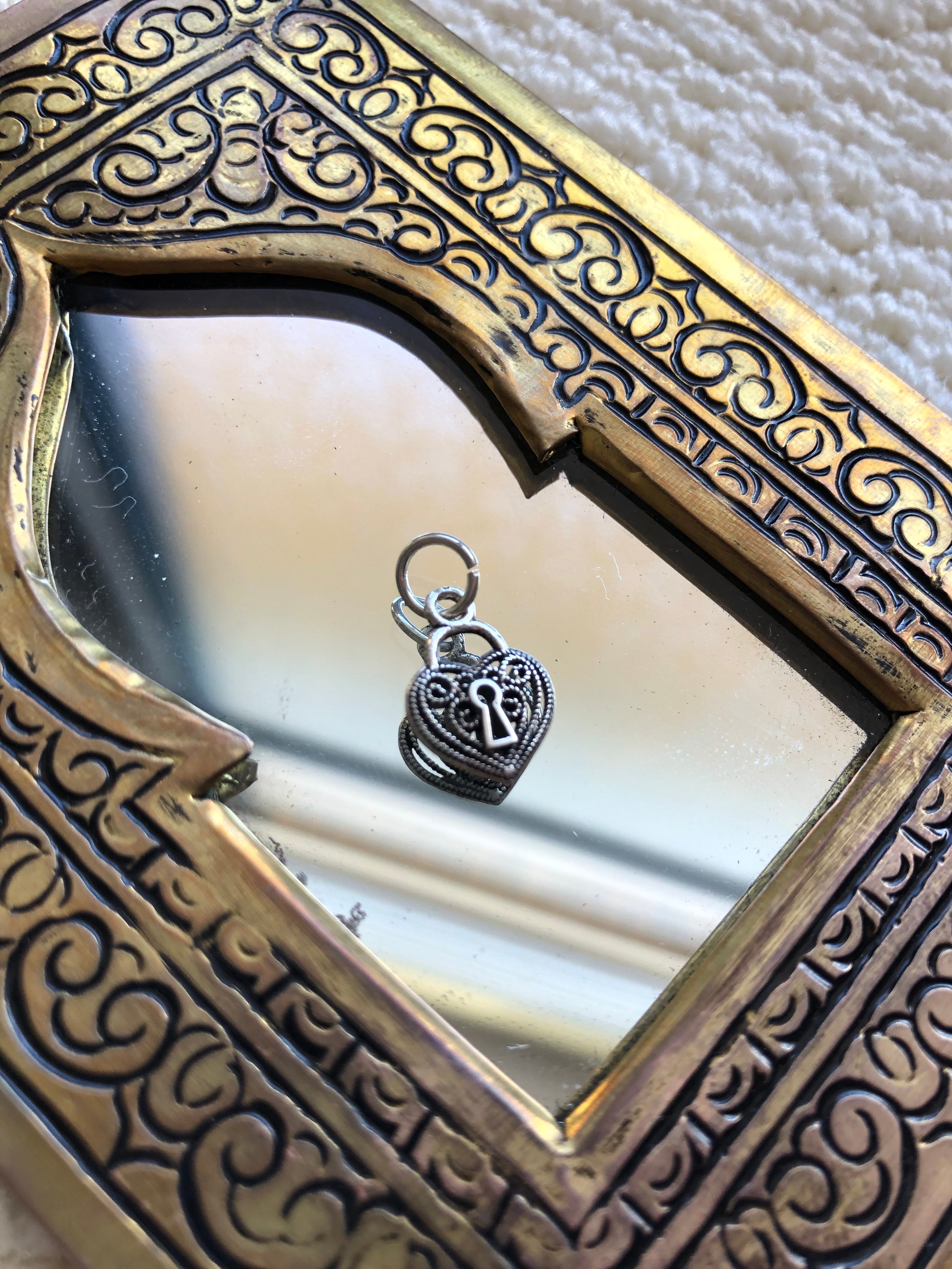 アラビックなシルバー装飾が可愛いハート型のロックのペンダントトップです。透かしが可愛い! 小ぶりなのでつけっぱなしジュエリーに最適です。 どこにもない一点もの。