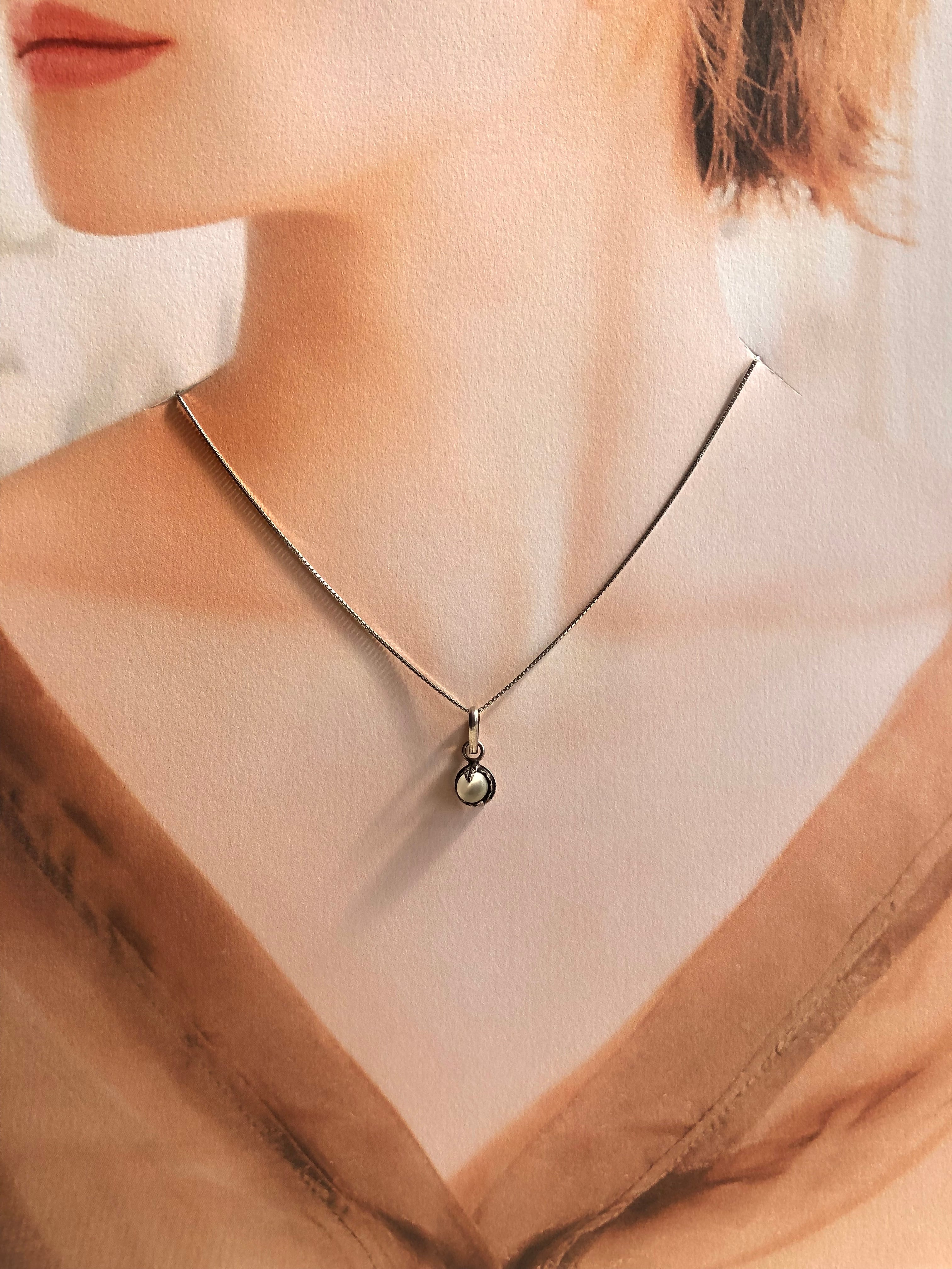 キャッツアイをりんごに見たてたペンダントトップ。 小さな葉っぱのシルバー装飾が可愛い一点。 かなり小ぶりなので、つけっぱなしジュエリーにぴったりです。